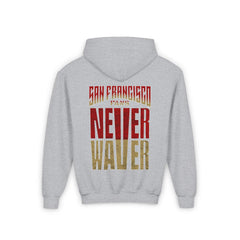 This Football Fans Never Waver T-Shirt embodies team spirit and loyalty. Perfect for football fanatics who want to showcase their dedication to their favorite team. Ideal for game days, sports events, and casual outings. The youth blend hooded sweatshirt is made of ultra-soft, preshrunk fleece that feels wonderful against the skin. The garment is 50% cotton 50% polyester with reduced lint buildup. This makes an excellent combination for printing. The front has a kangaroo pocket big enough for both hands. The neck is reinforced with twill taping.